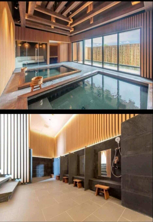 Facilities : > Swimming pool & steam room > Indoor & outdoor onsen > Fitness center > Golf swing practice area > Garden area > Co-working space > Children’s playground > Japanese restaurant & café on the 1st floor