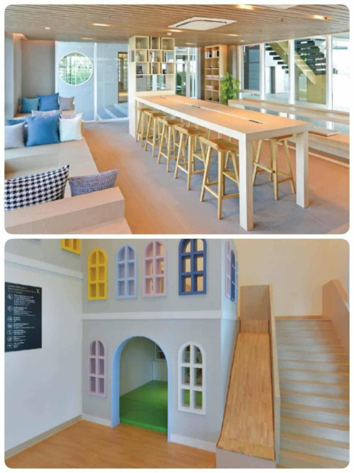 สิ่งอำนวยความสะดวก > สระว่ายน้ำ & ห้องสตรีม > ออนเซ็น (indoor&outdoor) > ฟิตเนส > สนามฝึกสวิงกอล์ฟ > สวนหย่อม > Co-working space > สนามเด็กเล่น > มีร้านอาหารญี่ปุ่นและคาเฟ่อยู่ชั้น 1